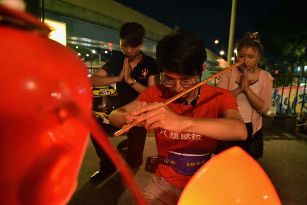 其一:由於這個表演空間實際上是當地居民經常經過的通道,因此如何在不妨礙演出的情況下與當地居民共處,便成為製作期間我們經常討論及考量的問題。首先,一個設定在夜市的故事,提供了一般民眾和表演空間「借道」的可能性,因此在前期的文本工作期,導演和演員、編劇相互討論,將其中一名角色的靈活度調高,讓他能夠更即時地根據現場情況進行互動。此外,也採用了區分開放互動和親密戲碼的策略,以控制人流經過表演空間的時機,類似於「觀眾遲進點」的設計。這不僅有助於保持戲劇節奏的掌握,還有助於緩和當地居民對演出的觀感,使整體演出更加順利而具有互動性。